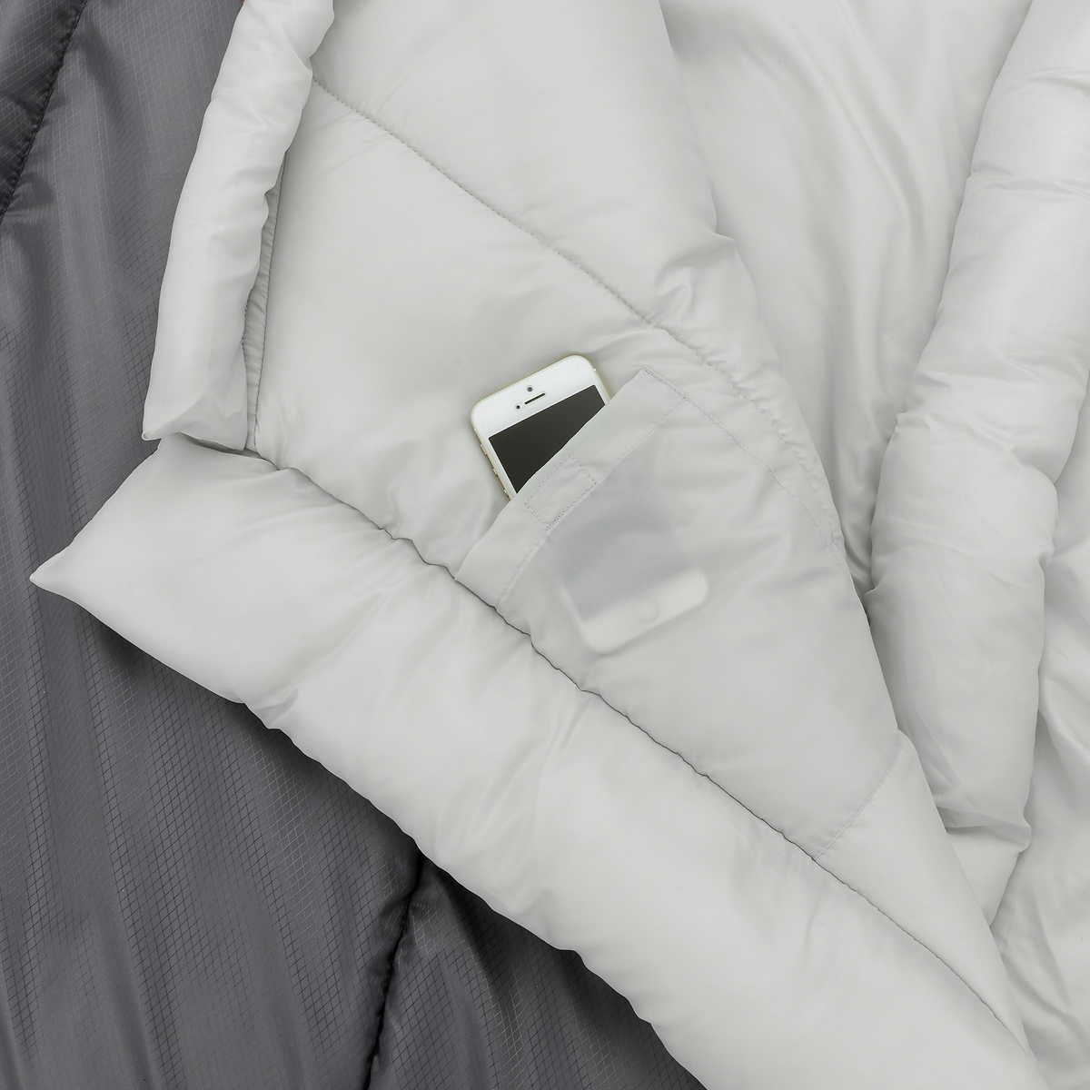 The sleeping bag with built-in hood has an extra foot space, pocket for your phone and anti-snag zipper. It made from a durable ripstop fabric.For ultimate comfort, this sleeping bag is best used in climates above 30 degrees Fahrenheit.